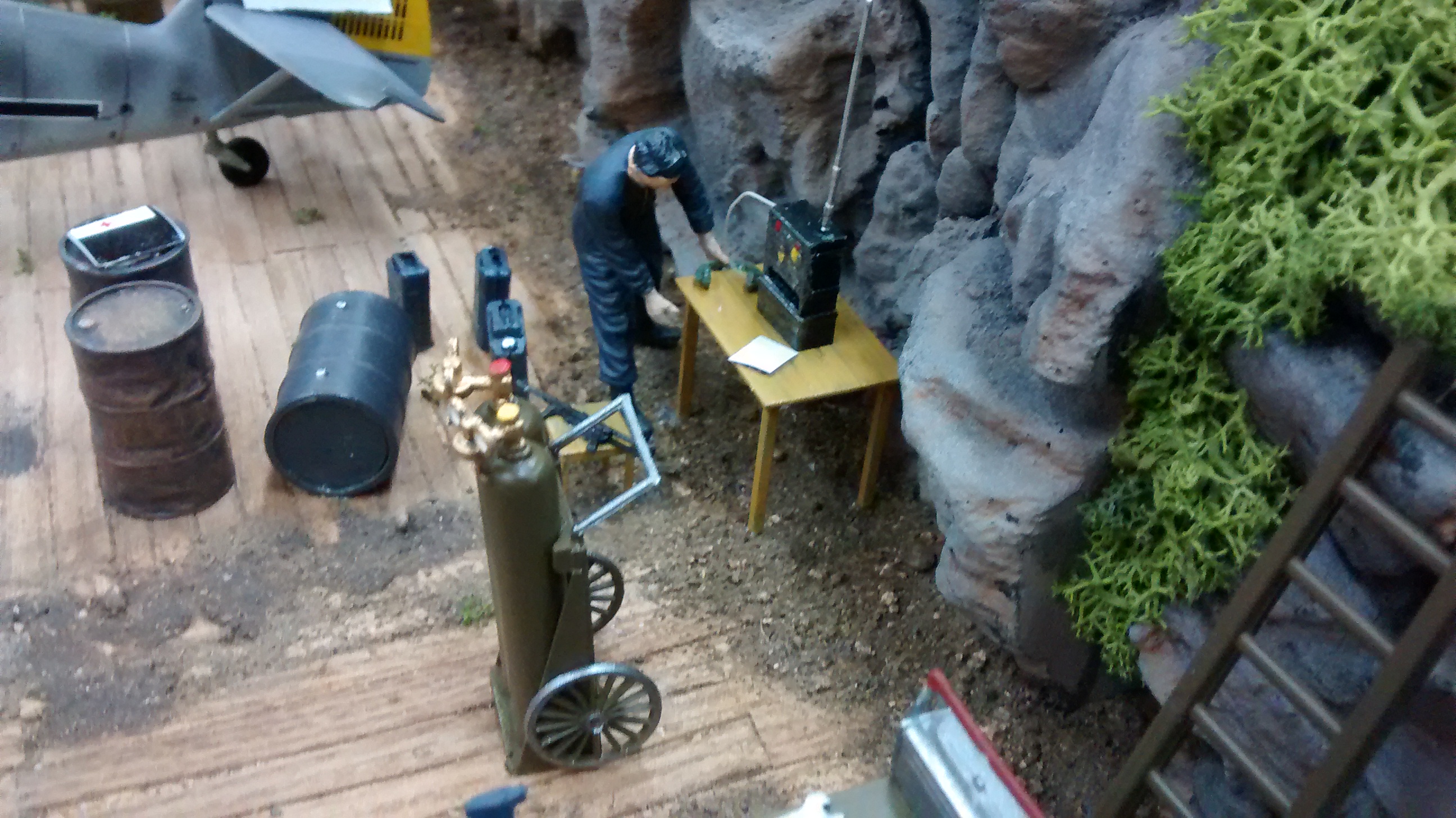 Auf einer Dioramenplatte wurde der Jagdflieger mit seiner Maschine gezeigt. Drumherum auch die Technik und das Team, welches nie erwähnt, jedoch für den Erfolg gebraucht wurde. Top-realistisch bis runter zum letzten Schraubenschlüssel wurde das Diorama ausgestaltet.