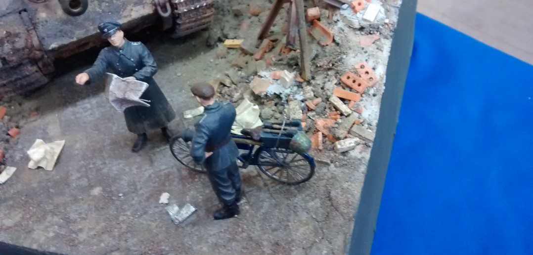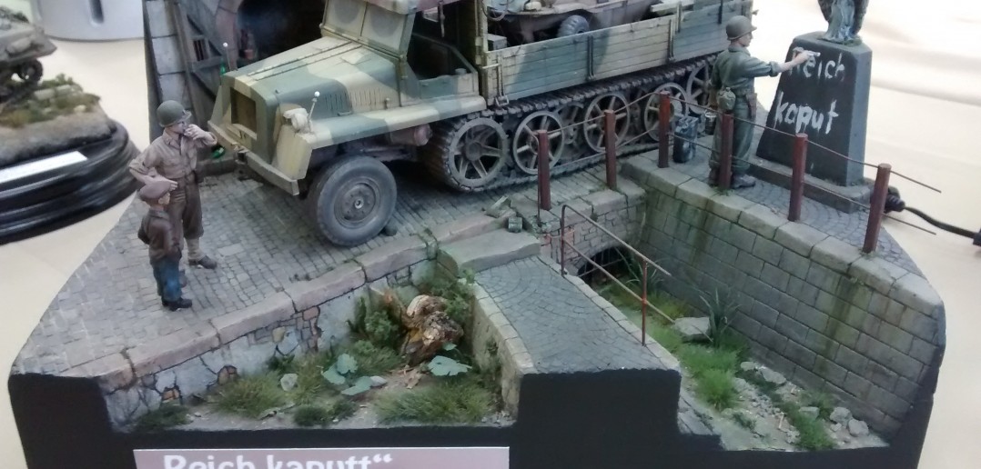Einen Namen konnte ich am Stand nicht finden, daher vergab ich selbst einen – blieb nach einigem Nachdenken bei „1945“ stehen. Ich denke es trifft die Situation ganz gut. Den Detailreichtum muss man nicht ansprechen – er steht mächtig im Raum. Auch das modellbauerische Können steht völlig außer Frage. Interessant fand ich den krassen Gegensatz zwischen der tonnenschweren Karosse des Königstigers und dem Drahtesel. Beide bedürfen einander um ihre Aufgabe zu erfüllen und doch könnten zwei Fahrzeuge nicht gegensätzlicher sein.