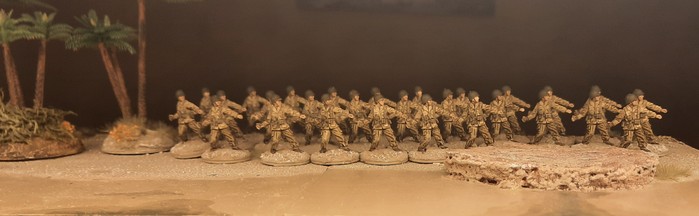 Für die 28 Mann verwende ich mein Bemalschema für US Infantry. Dieses ist sehr einfach gehalten: