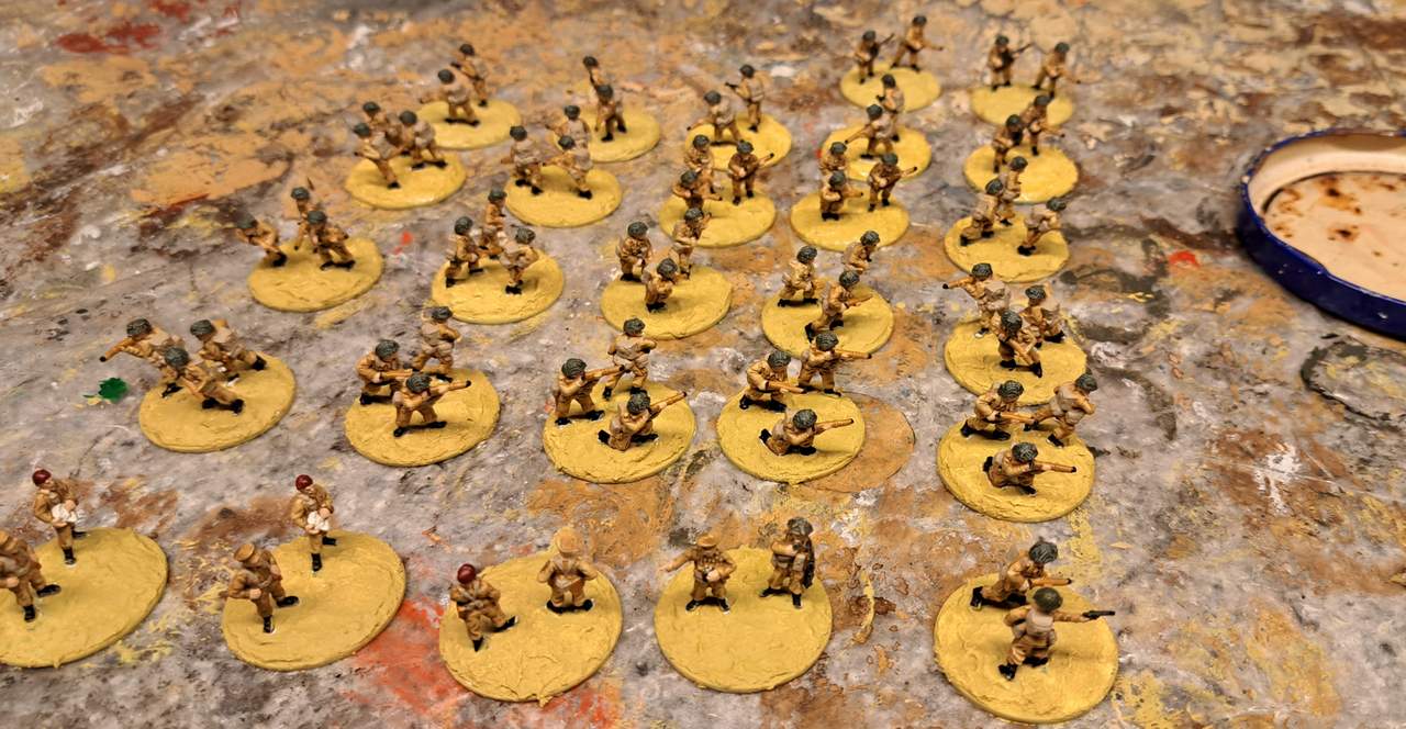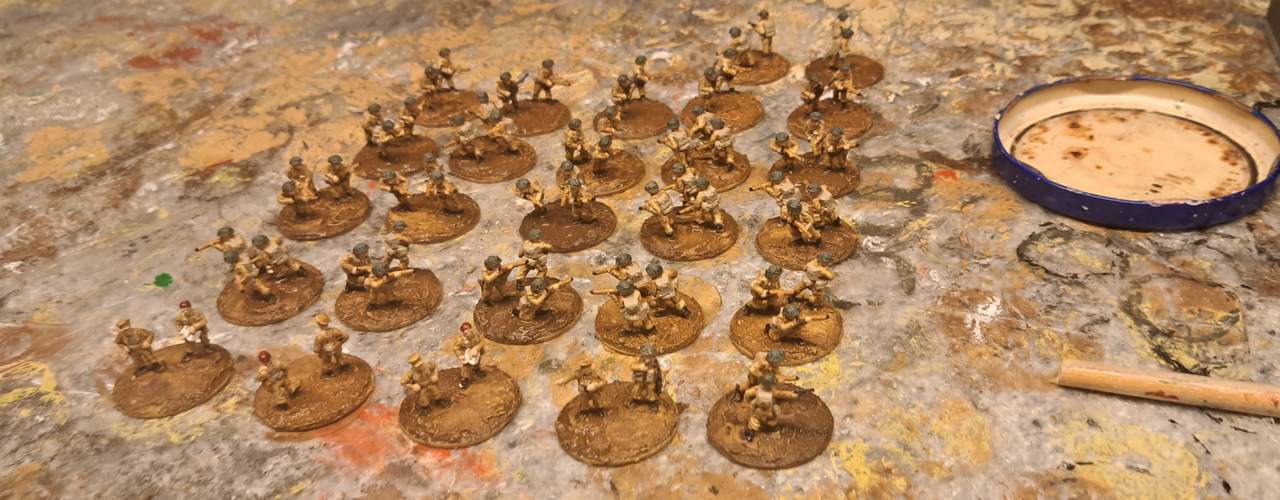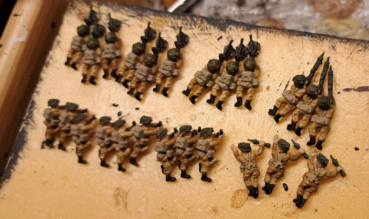 Die Bases der Rifle Groups und der Offiziere sowie der stehenden LMG-Teams wurden hier mit der „36314 Beige“ grundiert.