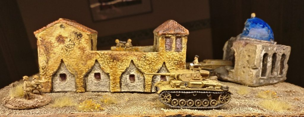 … wurde ebenfalls von Sturmine angegangen. Es erhielt wärmere Farbtöne, wie man sie in Nordafrika erwarten darf. Das zweite Gebäude mit der nunmehr blauen Kuppel stammt aus einem Haul in der Bucht. Eigentlich war es ein Versuch. Doch nach dem Trocknen entschieden wir uns dafür, das Versuchskarnickel zu verwenden.