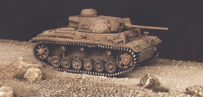Warum muss man einen Panzer bemalen, der einem doch so gut gefällt? Nun, ich habe es gerne recht einheitlich. Und da tanzt der Panzer III von Atlas doch etwas aus der Reihe. Es stand auch nicht wirklich viel an, aller mit einem Wash und anschließendem Trockenbürsten wollte ich den sehr „clean“ wirkenden Panzer III an die anderen Panzer II und III in meiner Afrikatruppe angleichen.