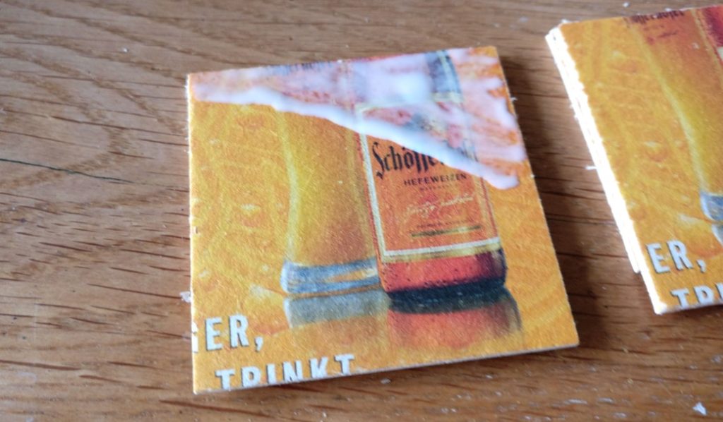 Nach dem Trocknen lasen sich die etwas skurril wirkenden Basen-Rohlinge mit dem Papierschneider wieder in eine quadratische Form bringen.