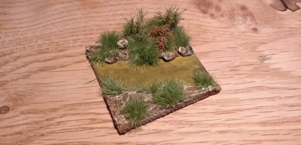 Natürlich musste gleich ein wenig gepröbelt werden. Wie man sieht, eignen sich die Basen hervorragend zum Legen ganzer Bachläufe. Die Natur ist natürlich nicht ganz so eckig und zackig wie das entstandene Kunstwerk. Dennoch wurde eine Idee geboren, nämlich in diesem Stil 15cm-Karrees für die Ausschmückung der PBI-Spielplatte herzustellen. Jedoch nicht sofort. Nicht vor kommendem Wochenende! Außer, es muss unbedingt sein…