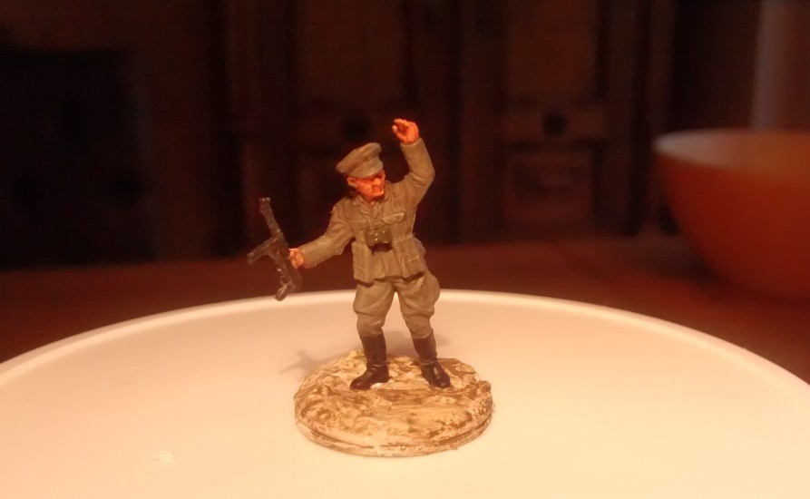Der Infanterie-Offizier mit stärker eingeschneiter Base. Das Grasbüschel von MiniNatur ist nicht mehr wirklich sichtbar.