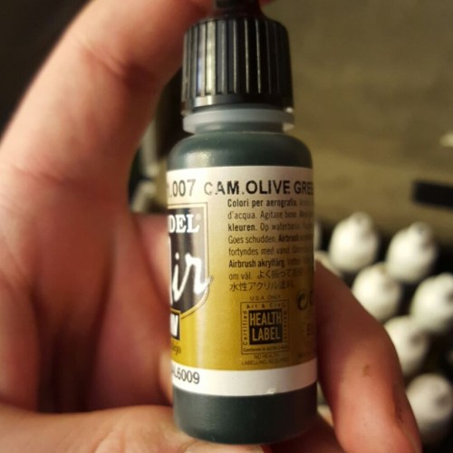 Zum Bemalen braucht es natürlich bestimmte Farbtöne und ein Farbsystems eines Herstellers, das für den Einsatz mit der Airgun verwendbar ist. Max nimmt hierfür das System von Vallejo her. Für den Einsatz in der Airgun hat Vallejo spezielle Farben, das sind jene in der „71.xxx“-Serie. Hier unsere verwendeten Farben.