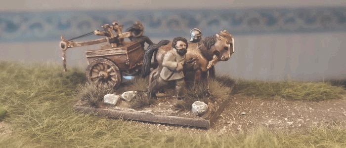 Auch hier delegiere ich die Arbeit an General PONAL. Ein paar Tropfen an Base, Pferde und Karren und schon sitzt das Plaustrum samt Scorpio fest auf der Base.