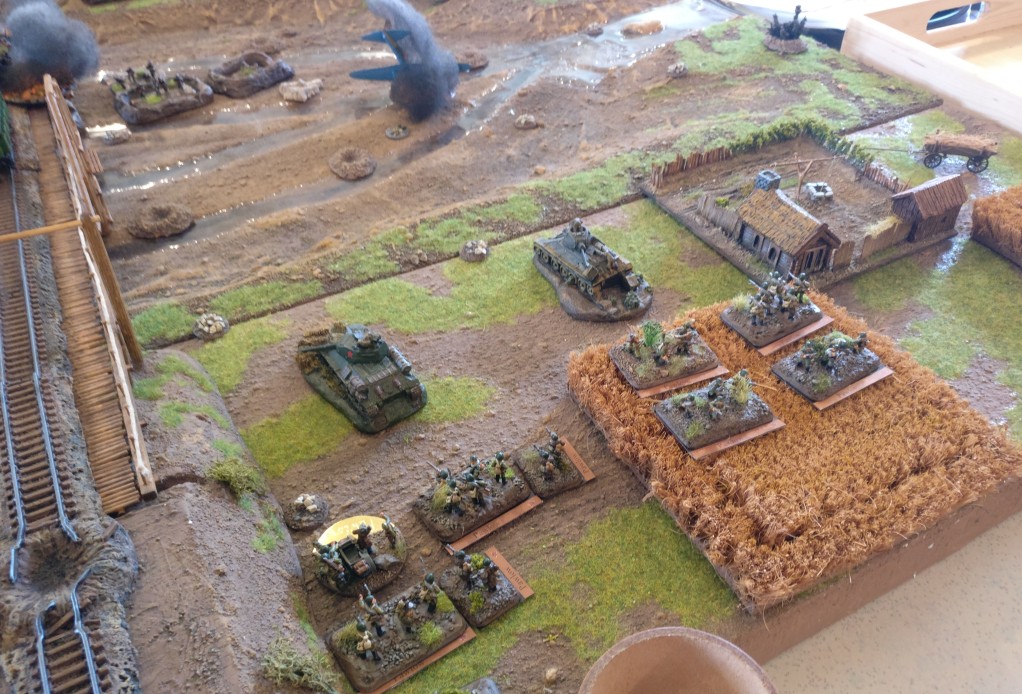 An dieser Stelle brachen wir das spannende Spiel ab, da wir das Limit der Veranstaltung leider bereits überzogen hatten. Natürlich wäre es schön gewesen, zu sehen, welche Auswirkung die deutschen Reserven gezeitigt hätten. Erste Infanterietrupps waren würfeltechnisch bereits bereitgestellt worden, warteten aber noch auf das Kommando zu Erscheinen auf dem Spielfeld.