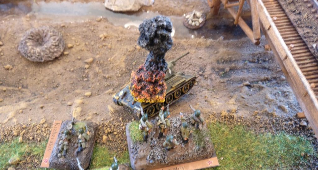 Der Vorstoß der Roten Armee mit Panzern und Infanterie gestaltet sich etwas schwierig. Die Infanterie reussiert, die Panzer kommen immer entweder nicht zum Schuss oder treffen nicht.