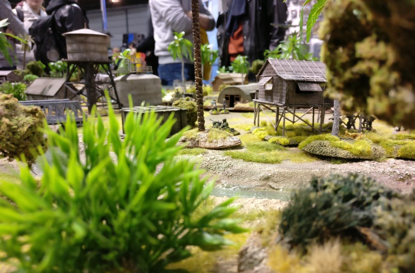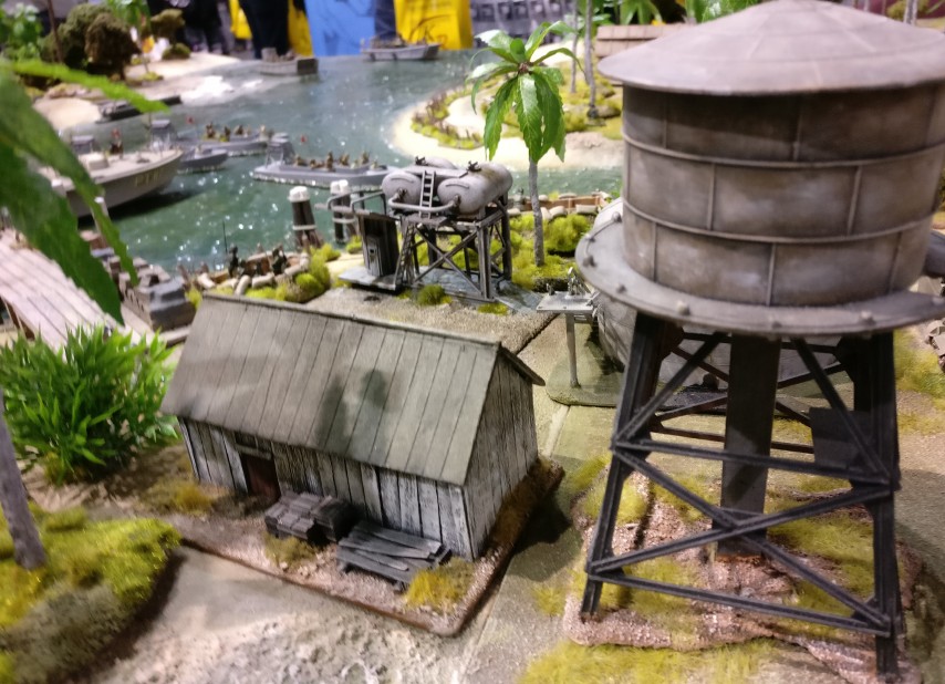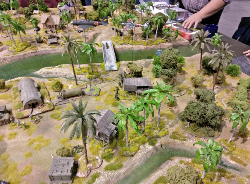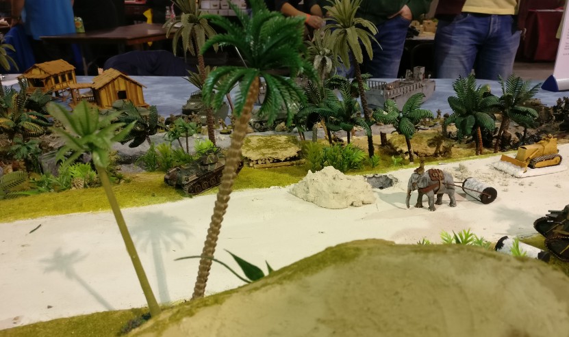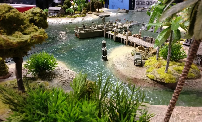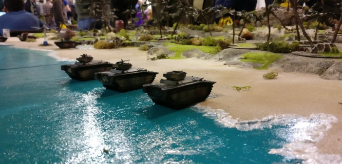 Die Diorama-Spielplatte der „Dortmund Amateur Wargamers“ mit dem Thema „Landung japanischer Truppen im Pazifik“