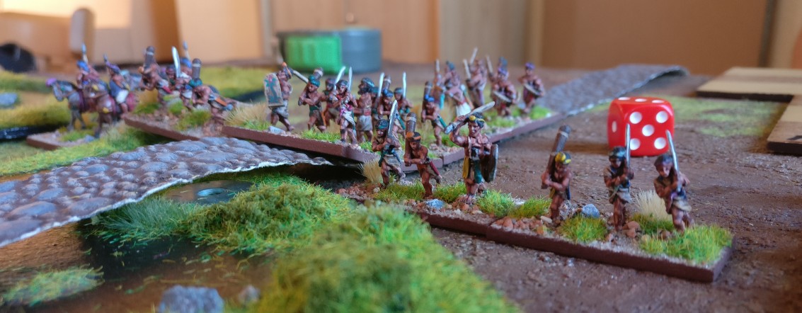 Über die Straße schickte er mir seine indischen Wegelagerer und Räuber entgegen. Im Sumpf kam es zu etwas Geplänkel, das Zeit kostete, letztlich aber weder ihn noch mich dem Sieg näher brachte.