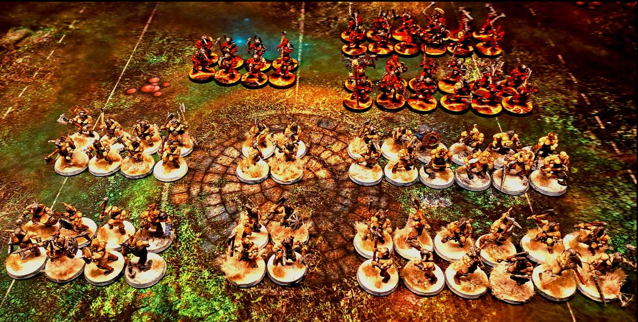 Mit zwei 12er-Einheiten in deiner Armee kannst du sicher länger Fernkampfattacken ausführen als mit nur einer. Auch wenn die eine Einheit gekillt wird. (Sie kommt ja auch wieder dank der Sonderregel „ZAHLLOS“) Wenn du also mindestens vier Einheiten gewöhnliche Krieger in deiner Armee hast, kannst du sie ganz einfach so aufstellen: