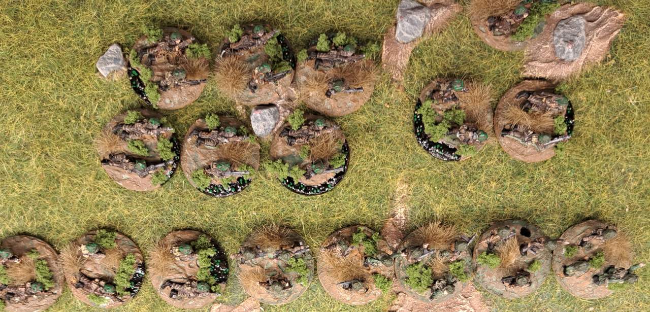 Der Name deutet es an. Die Truppe wird in den Sumpf geschickt. Das bedeutet eine eher schmierig-schlammige Base. Und das bedeutet moddriges Wasser bis auf die Base drauf. Entsprechend gehe ich bei der Bemalung der Bases vor.