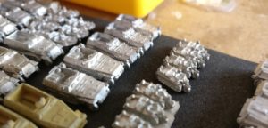 Jetzt steht es an, mal Hinterhalt-Tarnung in 1:285 zu zelebrieren. Wird sicher lustig, denn schon die eher monochromen Anstriche beim letzten Mal ließen den Sturmi gut ins Schwitzen kommen. Allerdings bietet sich die Hinterhalt-Tarnung tatsächlich an, sind doch jede Menge Late-War-Fahrzeuge dabei. Auch ein paar Sd.Kfz.251 Ausf. D! … auf die ich schon lange gewartet habe. Twelve Inches of Tanks, na eigentlich ein paar mehr schon.