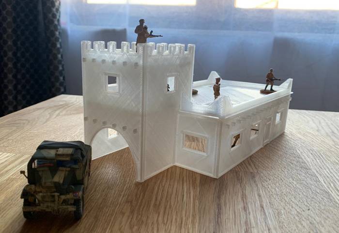 Der Panzerschmied möchte für seine 8th Army ein paar adäquate Gebäude für ein Szenario in Nordafrika herstellen. Die Anzahl ist deutlich größer als „Eins“ und er sagte sich, dass er das wohl besser mit Hightech angehen sollte. Die 3D-Drucker sind ja mittlerweile recht erschwinglich geworden. Da kann man schon mal das 3D-Druck-Verfahren in Erwägung ziehen.