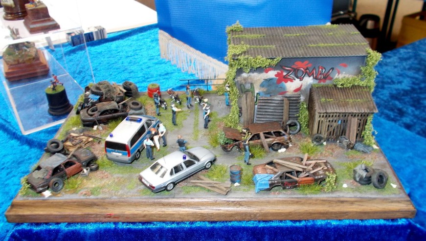 Diorama „Festnahme auf dem Schrottplatz“. Wo sonst fängt die Polizei die wirklich gefährlichen Genoven?