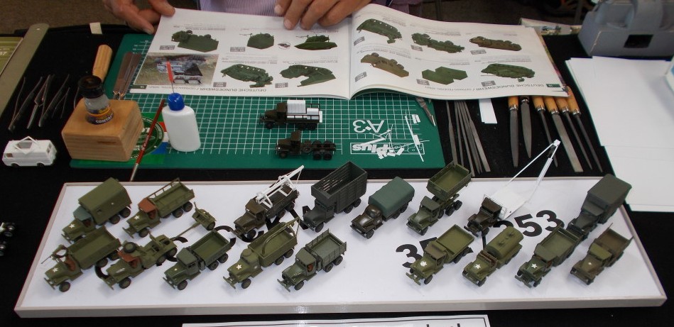 Am Stand der Dutch Armour Association gibt es für den Sturmi Interessantes zu sehen. Viele Varianten von Gefechtsfahrzeugen der Roten Armee. T-34 und KV-I. Wenn meine Augen nicht trügen, tummelt sich hier eine Reihe von Fertigmodellen.