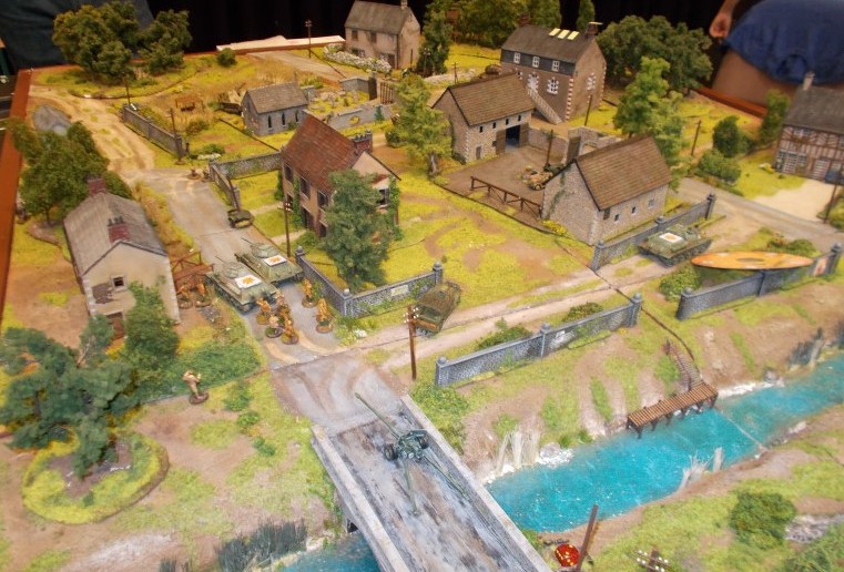 Hier ist auf der Behind Omaha Spielplatte ordentlich was los. Die Ortschaft ist fest in deutscher Hand, wie die vielen Modelle in den Straßen belegen.
