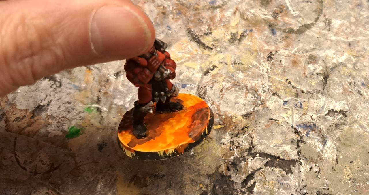 Die neuen Lava-Bases sollten ja nun der „Warmth of Khorne“ nachempfunden werden. Dazu hatte ich mir bereits ein Vorgehen für die ersten 10 Khorne-Krieger zurechtgelegt.