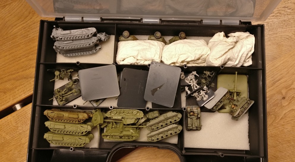 Es war jetzt wirklich ein ganz merkwürdiger Zufall. Erst sprach mich Dominic auf seine neue Idee an. Ob ich schon mal über „Cold War“ in 15mm nachgedacht hätte? Ja, wieso? Ja, weil ich überlege, damit anzufangen. Wegen „Check Point Charly“ (seine Spielplatte) und weil da in 15mm einfach mehr geht. Und ob das nicht was für uns wäre. Und paar Tage später habe ich in Facebook die Message vom Metzger in der Inbox. „Ich überlege grade, meine 15mm Armeen abzugeben. Haste Interesse?“. Ja was isses denn? „Team Yankee und so“. Aha.
