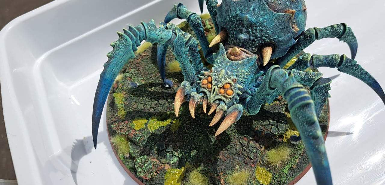 Die Herren der Wildnis geben speziell einer Spinnenarmee Boni. Der wesentliche Bonus ist eine „+1“ auf den Schuss mit den Kompositbögen, wenn der Gegner in SK-Nähe steht. Meine Spinnenreiter haben keine Kompositbögen. Ich habe daher lange darüber nachgedacht, weitere Spinnenreiter mit Kompositbögen aus dem 3D-Drucker bei Etsy zu ordern. Doch irgendwann wurde mir bewusst, dass ich mit der Spinnenarmee in der bestehenden Ausstattung bereits sehr viel ausrichten kann.