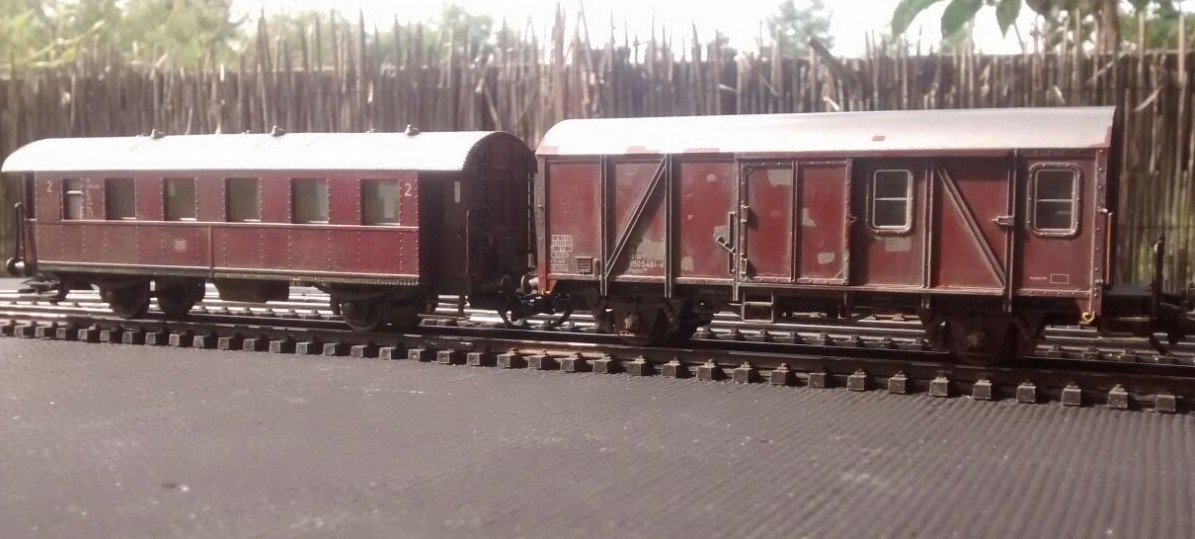 Zwei weitere interessante Aufgaben hat sich Doncolor gestellt. Es ist eine alte rote Donnerbüchse mit geschlossenen Plattformen (1. Klasse) und ein Güterzugbegleitwagen mit Abteilraum für das Begleitpersonal. Beide Wägen erfahren eine besondere Behandlung.