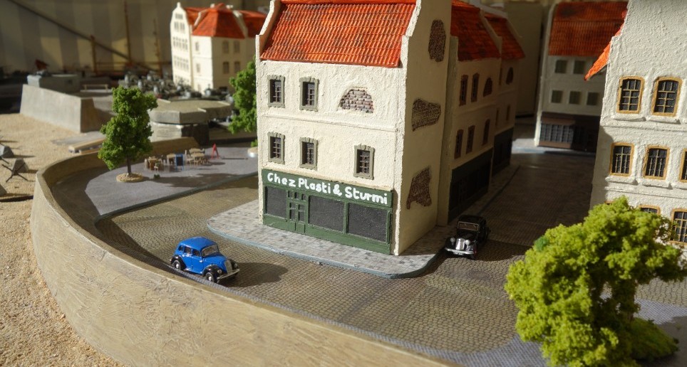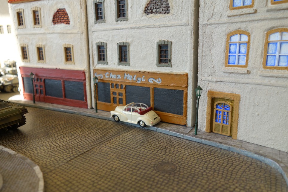 „Chez Plasti & Sturmi“ – dies ist nicht nur der Name des hier sichtbaren Bistros. Das ist auch unser Motto, nach dem wir unsere Besucher und Gäste am Stand von Saint-Aubin-Sur-Mer willkommen heißen und zu einem Game „Shermanjagd“ einladen.
