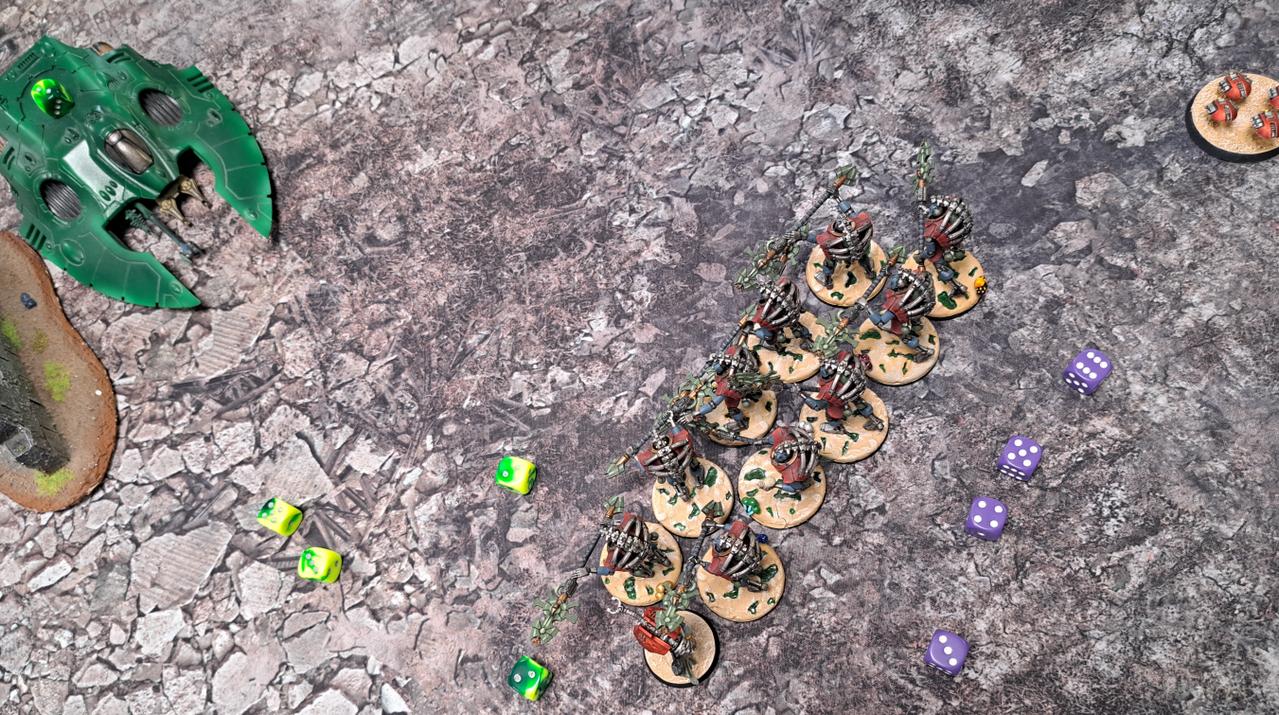 So ab Runde vier (wir spielten fünf Runden) kamen die Eldar in die Defensive. Die größere Zahl an Einheiten der Necrons und deren Feuerkraft dezimierten die Eldar, vor allem deren schwere Einheiten. Das kippte das Gleichgewicht zu Gunsten der Necrons.
