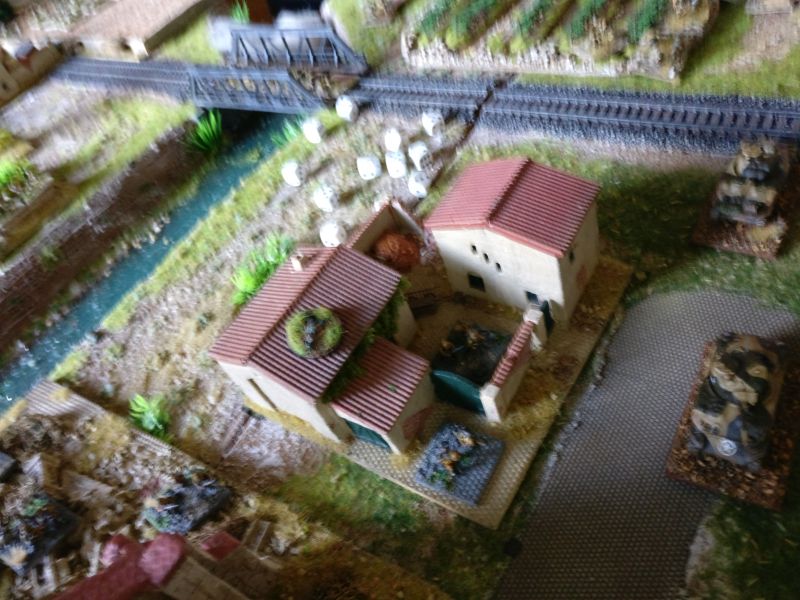 Der Bereitstellungsraum liegt sicher hinter dem Fluss. Bis hierher können die Krauts im Ort nicht beobachten.
