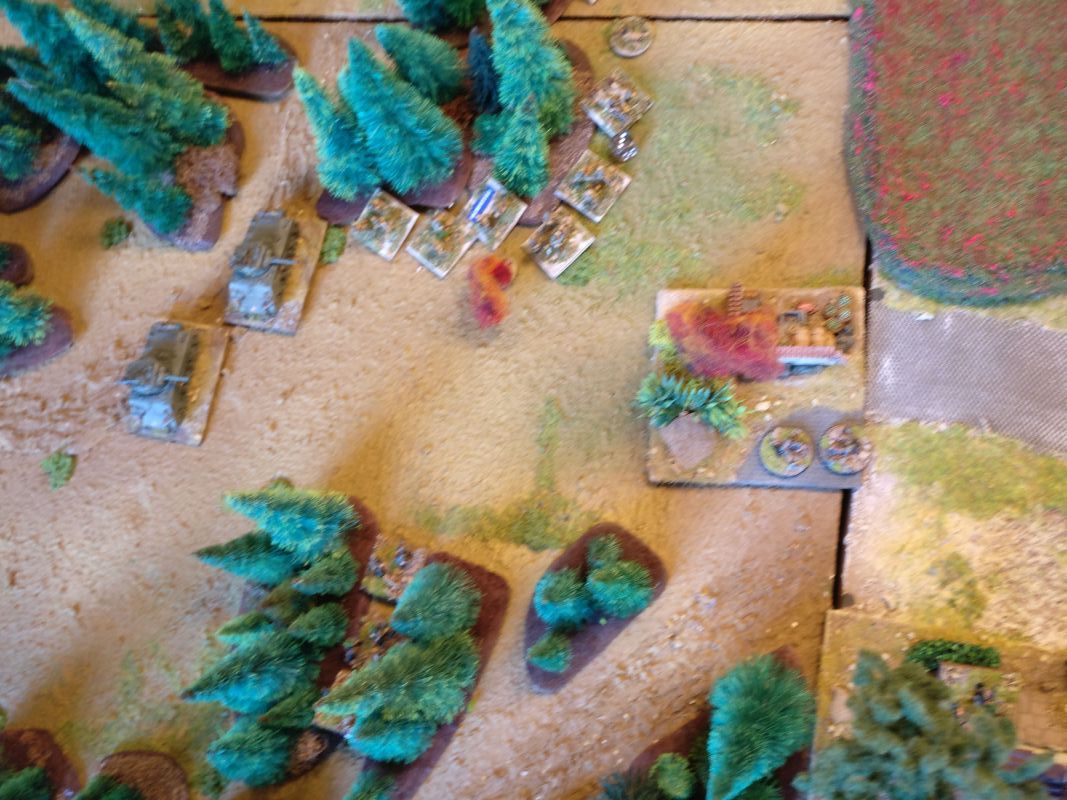 Der Vorstoß der US-Panzer reicht bis tief in den Wald hinein. Der Umfassungsangriff auf den zweiten Ortsausgang kommt in Fahrt.