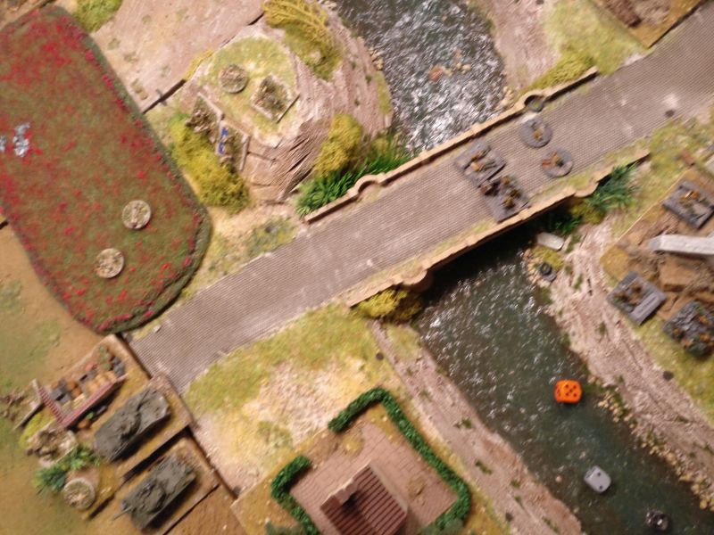 Die nur sehr zögerlich und von Würfelpech begleiteten, vorpreschenden deutschen Panzer können auf den US-Shermans keine Treffer erzielen. Allerdings führt der Panzerangriff zu einer merkliche Entlastung der Verteidiger an der Brücke.