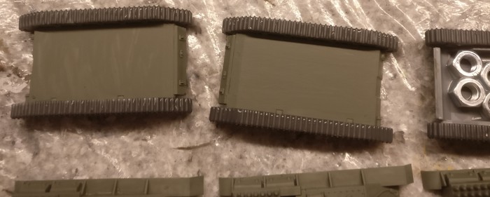 Nur 13 statt 21 Muttern passen in den keineren Innenraum der Modelle der SU-76 der Plastic Soldier Company.
