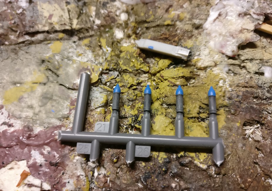 Das war noch ein wenig tricky. Leider hatte ich keine überzähligen Granaten zur Bestückung. Andererseits wollte ich den Jungs auch was in die Pfoten drücken. Also bin ich mal an die Krabbelkiste gegangen und habe gesucht. Der Plasti hatte mir vor Kurzem mal ein paar Gussäste mit Granaten vermacht. „Kannste haben. Mach was Schönes draus.“ hat er gesagt. Jetzt war ich ihm plötzlich sehr dankbar für die Murmeln.