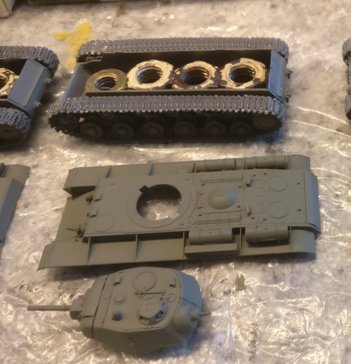 - Grundieren der Panzerketten mit Revell Aquacolor Panzergrau.