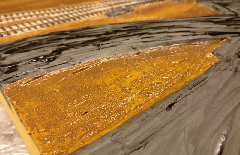 Ein gründliches Trocknen der aufgetragenen Farben ist erforderlich für die spätere Weiterverarbeitung. Die Oberfläche der Betonstraßen ist durch den Auftrag der Innenspachtel mit feinen Strukturen versehen. Das Industriegrau alleine zeigt sie jedoch nicht freiwillig. Mit einem dunklen Wash muss man sie gezielt herausarbeiten – und mit einem anschließenden Trockenbürsten sichtbar machen.
