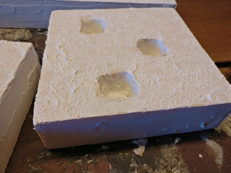 Die übrige Oberfläche des Landschaftssegments betupfte ich flächendeckend mit Strukturpaste. Damit war schließlich das gesamte Landschaftssegment mit einer Schicht Strukturpaste überzogen. Jetzt war Trocknen angesagt.