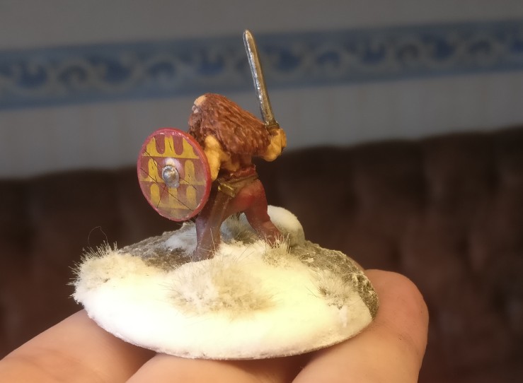 Es hat geschneit. Der SAGA Kriegsherr/Warlord  der heidnischen Rus als Schneemonster...