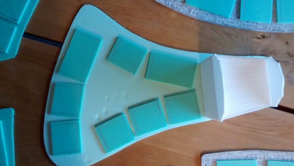 Wir gelangten zum Entschluss, zuerst eine vereinfachte Stadtplanung durchzuführen, indem wir anstelle der späteren Häuser Platzhalter aus Trittschalldämmung verlegen würden. Die Platzhalter sollten dem exakten Grundriss der Häuser entsprechen. So ließen sich recht schnell Platzhalter für eine große Menge an Häusern herstellen und auch Kombinationen aus unterschiedlichen Haustypen austesten.