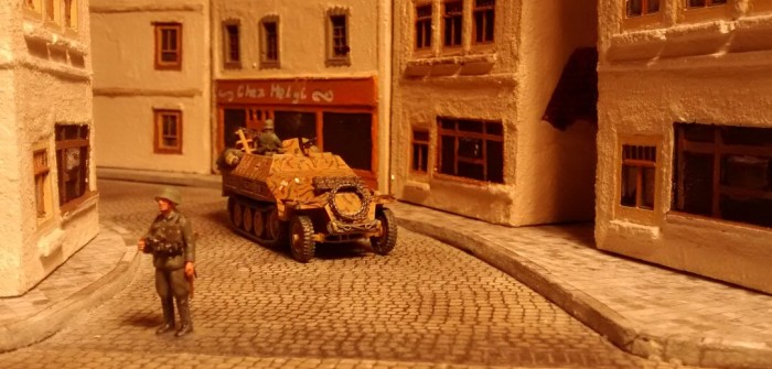Plasti hat dann zur Sicherheit noch ein paar Häuser mehr fabriziert. Das sollte sich dann auch bewähren. Wir bemerkten nämlich bei jedem Aufbau der Platte, dass die Aufstellung der Häuser nie exakt die gleiche war, wie beim letzten Mal. So kam es, dass wir mal mehr, mal weniger Häuser benötigten…