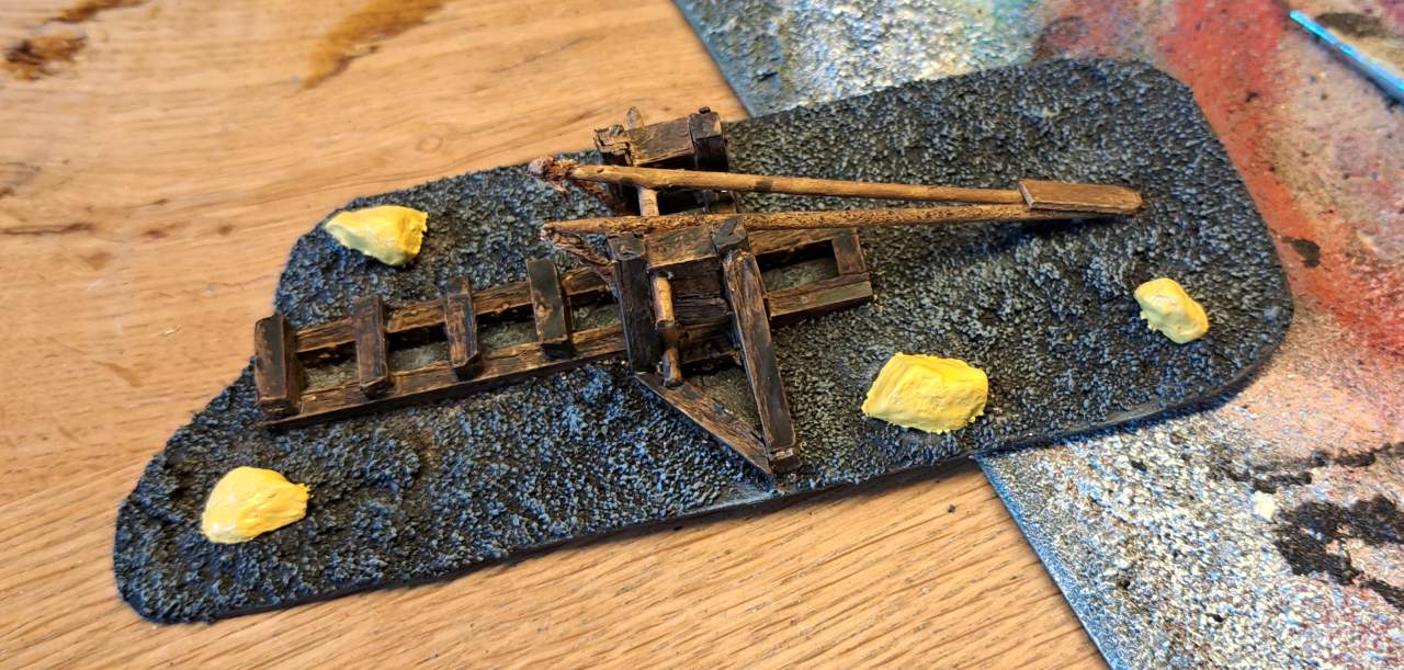 Der Hebelarm und die Winden sind mit „Lederbraun“ gewasht. Sie heben sich angenehm vom Rest des Schädelkatapults ab.