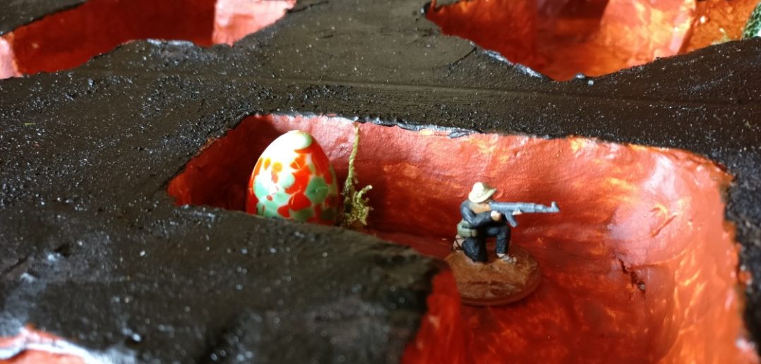 Ja nee, is klar. Wer zugedröhnt durch den Urwald stapft, wird so seine Probleme beim Heben eines Schatzes haben. Damit der Schatz des Ho-Chi-Minh nicht auf ewig in den Tiefen von Charlys Tunnel liegen muss, haben wir Schatz-Marker entworfen und hergestellt. Ursprünglich hatten wir aus dem Modellbahnbereich acht knallrote Cola-Kisten vorgesehen. Beim näheren Hinsehen, wirkten die Biester aber doch recht winzig. Wenn die dann in irgendeiner Ecke von Charlys Tunnel rumliegen, findet die eh keiner, dachten wir.
