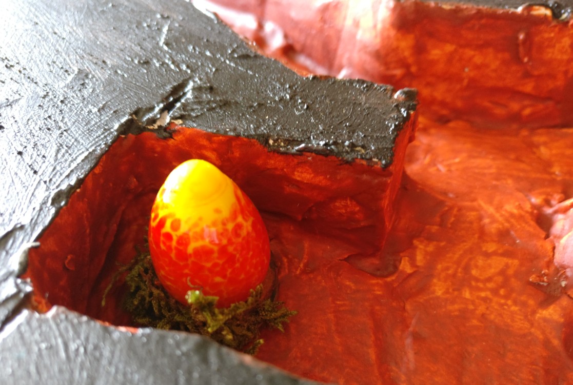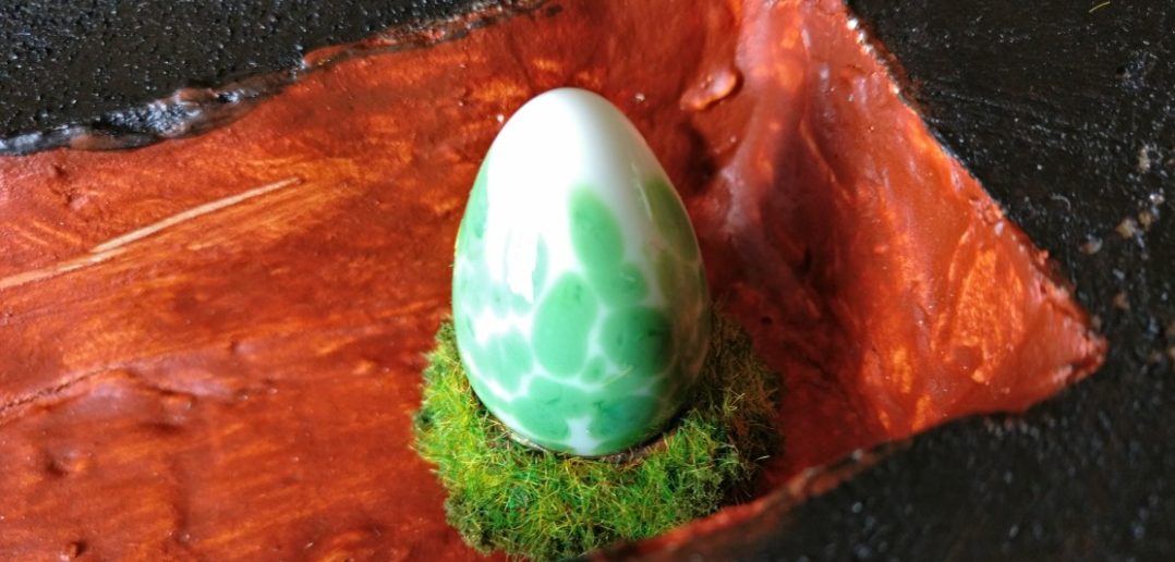 Die Glas-Ostereier werden in den Klecks der Strukturpaste gedrückt. Die muss natürlich erhärten, damit der Schatz Marker zum Schatz Marker wird.