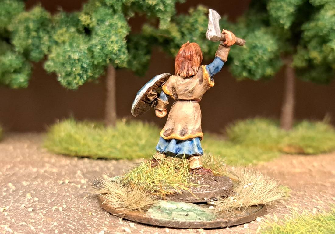 Einer das SAGA-Bauern mit Schleuder im Detail. Man achte auf die Ausgestaltrung des Saums am unteren Ende des Gewandes und an den Ärmeln. Mit Contrast Colours wurde hier auch gearbeitet…