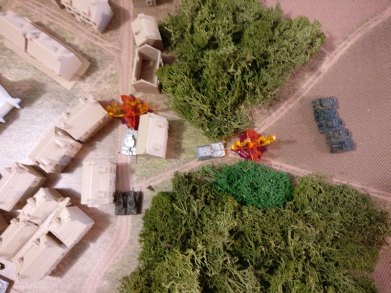 Die M10 Wolverine innerorts gehen ebenfalls in Flammen auf.