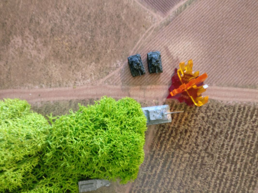 Erneut muss sich die Hummel-Batterie zurückziehen. Nun muss die Batterie über Taverneux hinweg schießen. Sie stellt sich der Aufgabe und nimmt die Tank-Gruppe am anderen Ortsrand von Taverneux unter Feuer.