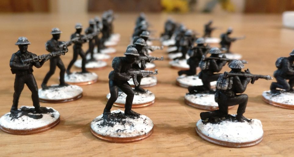 Die 30 Minis aus dem Esci Set 229 North Vietnamese Soldiers and Vietcong: Gebased und schwarz grundiert. Waiting for orders…
