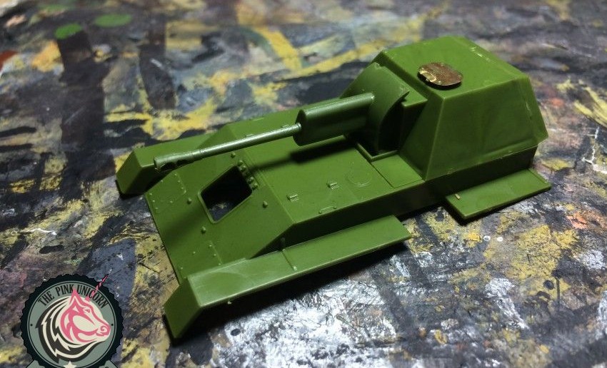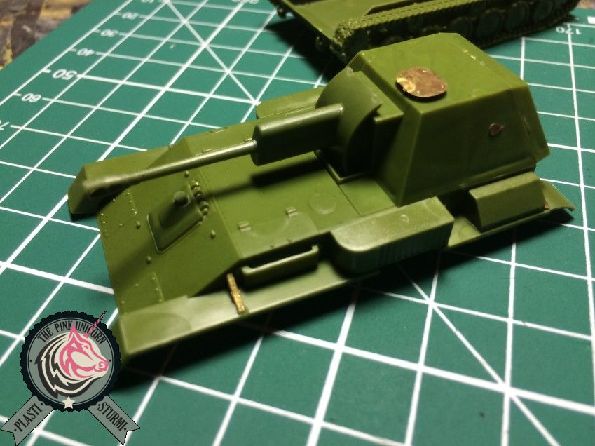 Hier der UM Bausatz 304 „SU-76“ bei der Endmontage. Man sieht der SU-76 ihre Verwandlung gar nicht mehr an. Klein und unscheinbar steht sie da.